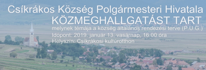 Az iratcsomót a csíkrákosi községházának titkárságán lehet leadni munkanapokon 8.30-14.30 között, leadási határidő 2018. október 31.