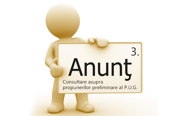 Avand in vedere Ordinul nr. 2701/30.12.2010 al Ministerului Dezvoltarii Regionale si Turismului pentru aprobarea Metodologiei de informare si consultare a publicului cu privire la elaborarea sau revizuirea planurilor de amenajare a teritoriului si de urbanism, se face cunoscuta publicului etapa pregatitoare de elaborare.