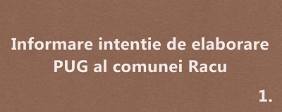 PUBLICUL ESTE INVITAT SA TRANSMITA OBRERVATII asupra documentelor expuse la sediul Primariei Comunei Racu.